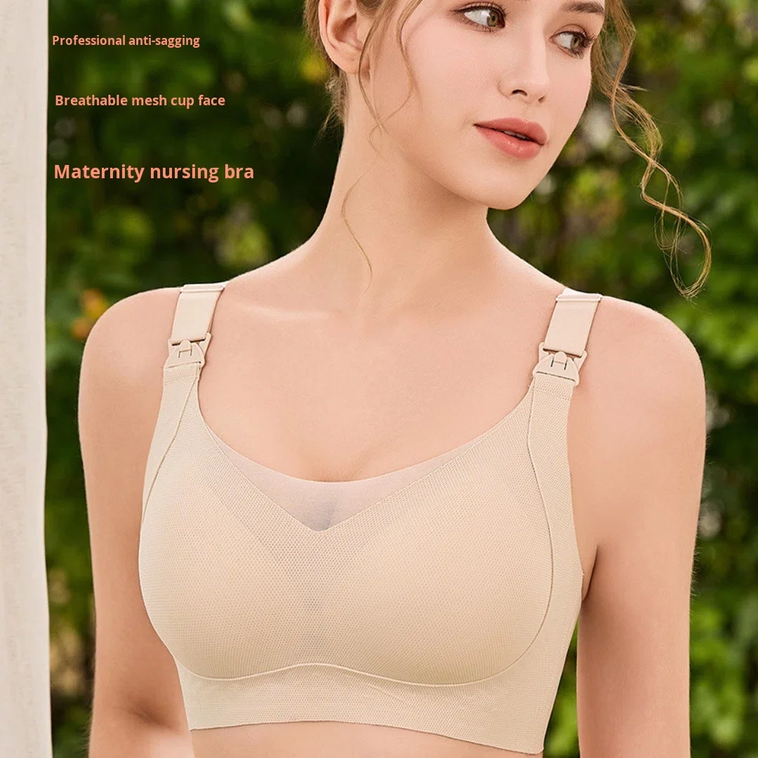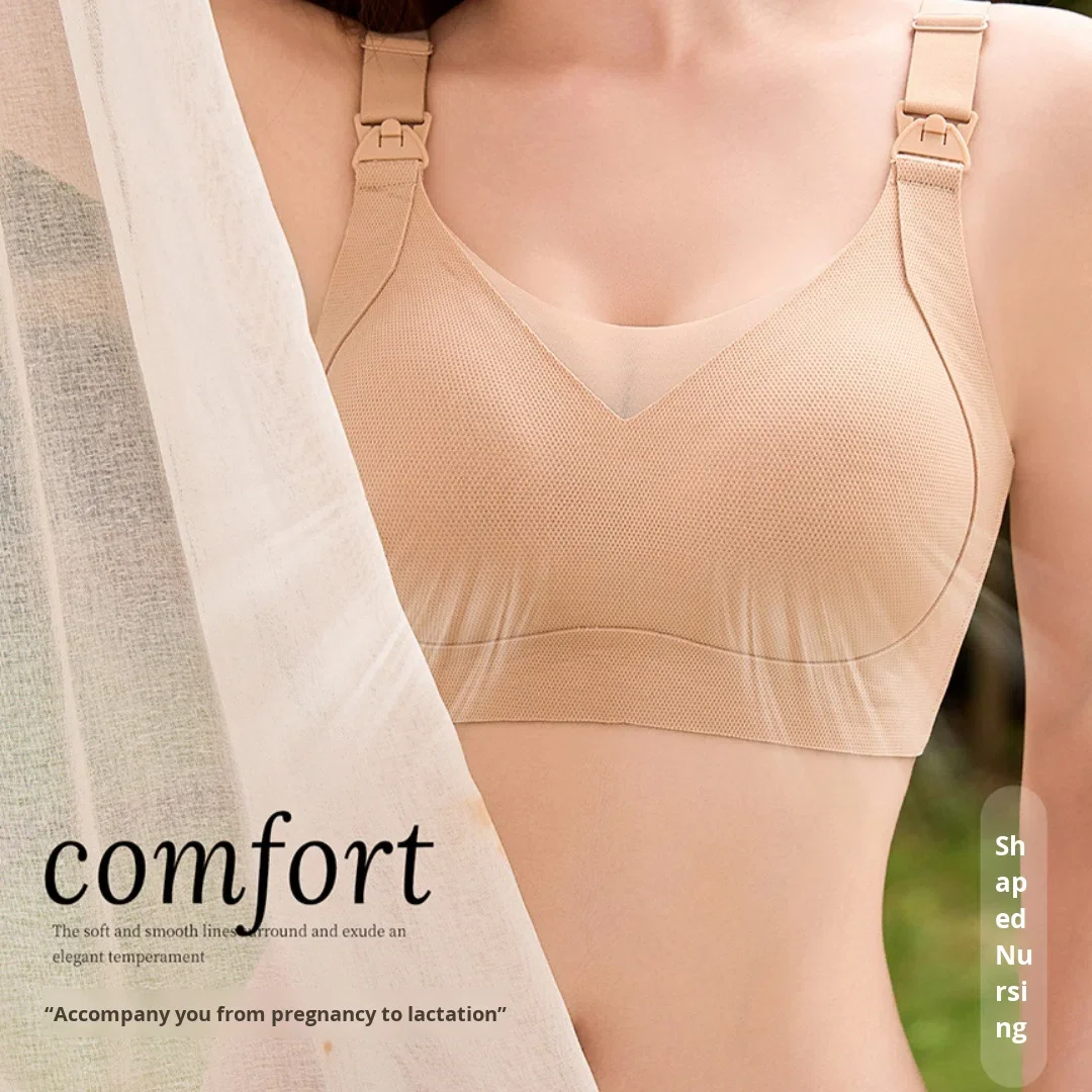 New Style Jelly Adjusted-Straps Wire Free Removable Pads Thin Nursing Bra Mesh Comfortable Breathable Push-Up Breastfeeding Bra